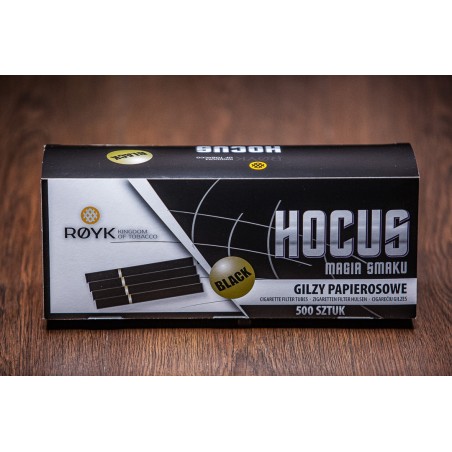 Сигаретные гильзы HOCUS BLACK 500 штук в упаковке. Выполнены из черной бумаги, имеющей большую плотность, чем у классической гильзы данного бренда. Для изготовления гильз HOCUS BLACK используется целлюлоза премиум класса. Черный цвет и золотистая надпись, придает солидный дизайн сигаретам. Гильзы стандартные и подходят как для ручных, так и для электрических машинок для забивания табака.